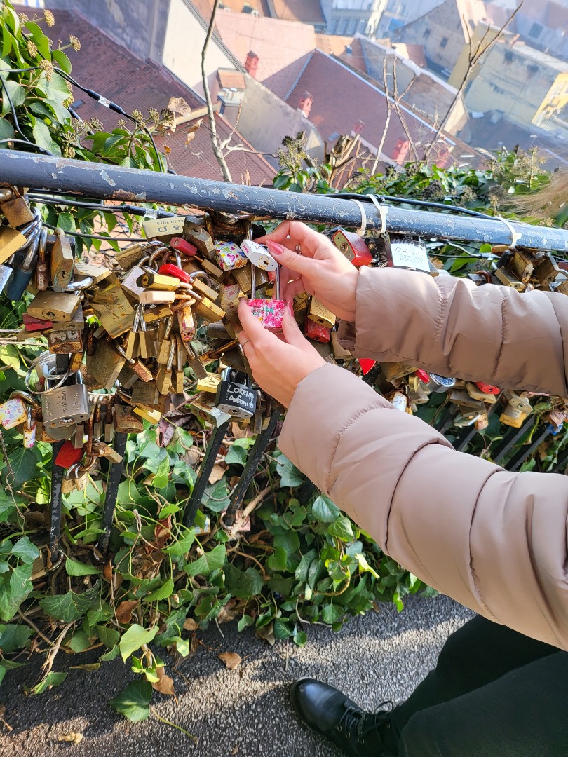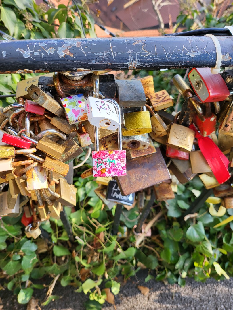 Nato me je zvlekla do tiste ograje, kjer vsi obešajo ključavnice. In hop – klik! Zaklenila me je, ključ pa vrgla stran. Zdaj sem uradno njena lastnina. Še dobro, da je ključavnica močna, ker če bi se zanašala na mojo disciplino ob pogledu na hladno pivo, bi verjetno že zdavnaj 'zbežal' ... ampak hej, vsaj vem, da me zdaj nobena druga ne more odkleniti!